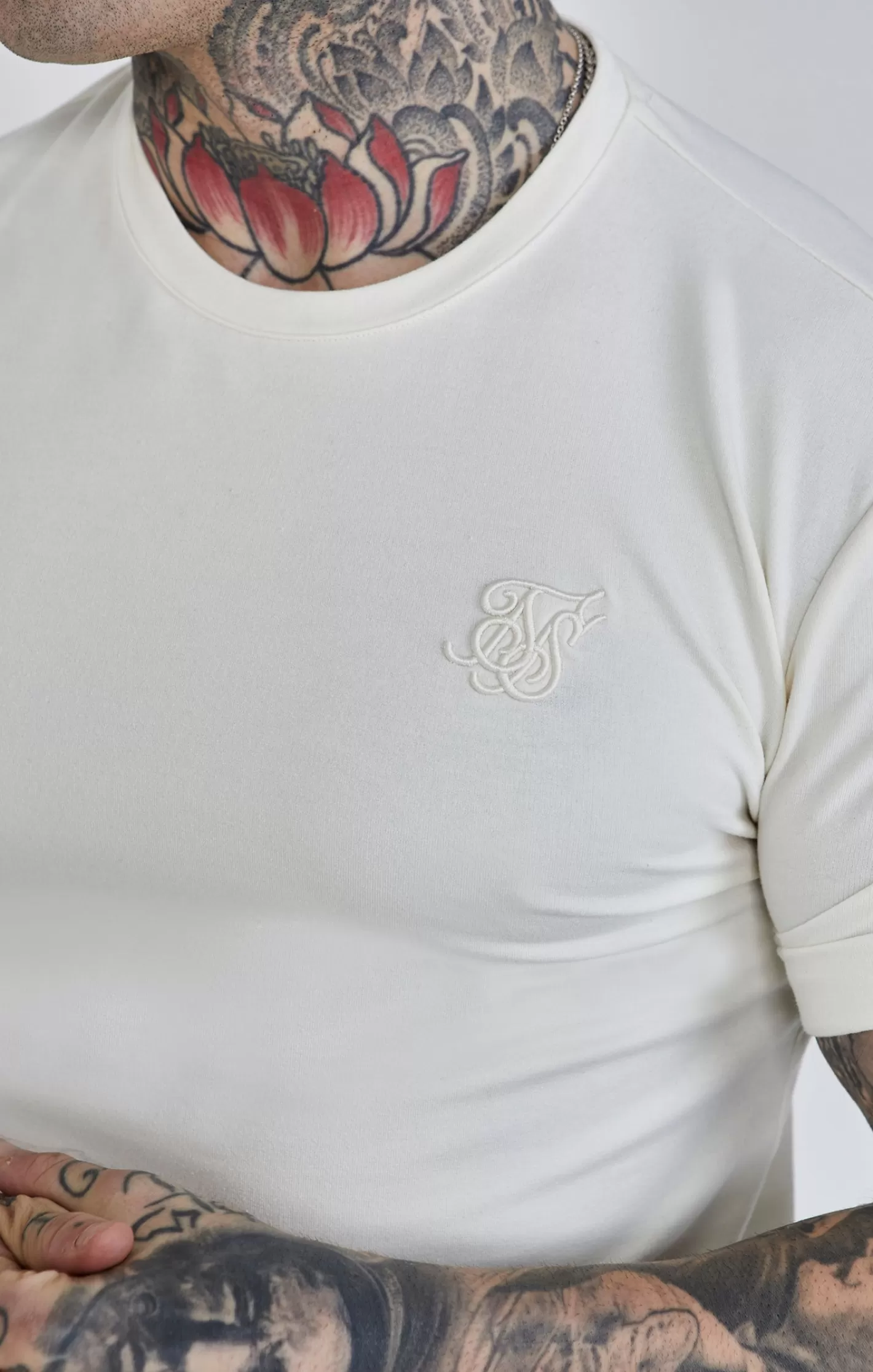 SikSilk-Mens-Ecru-Roll-Sleeve-T-Shirt