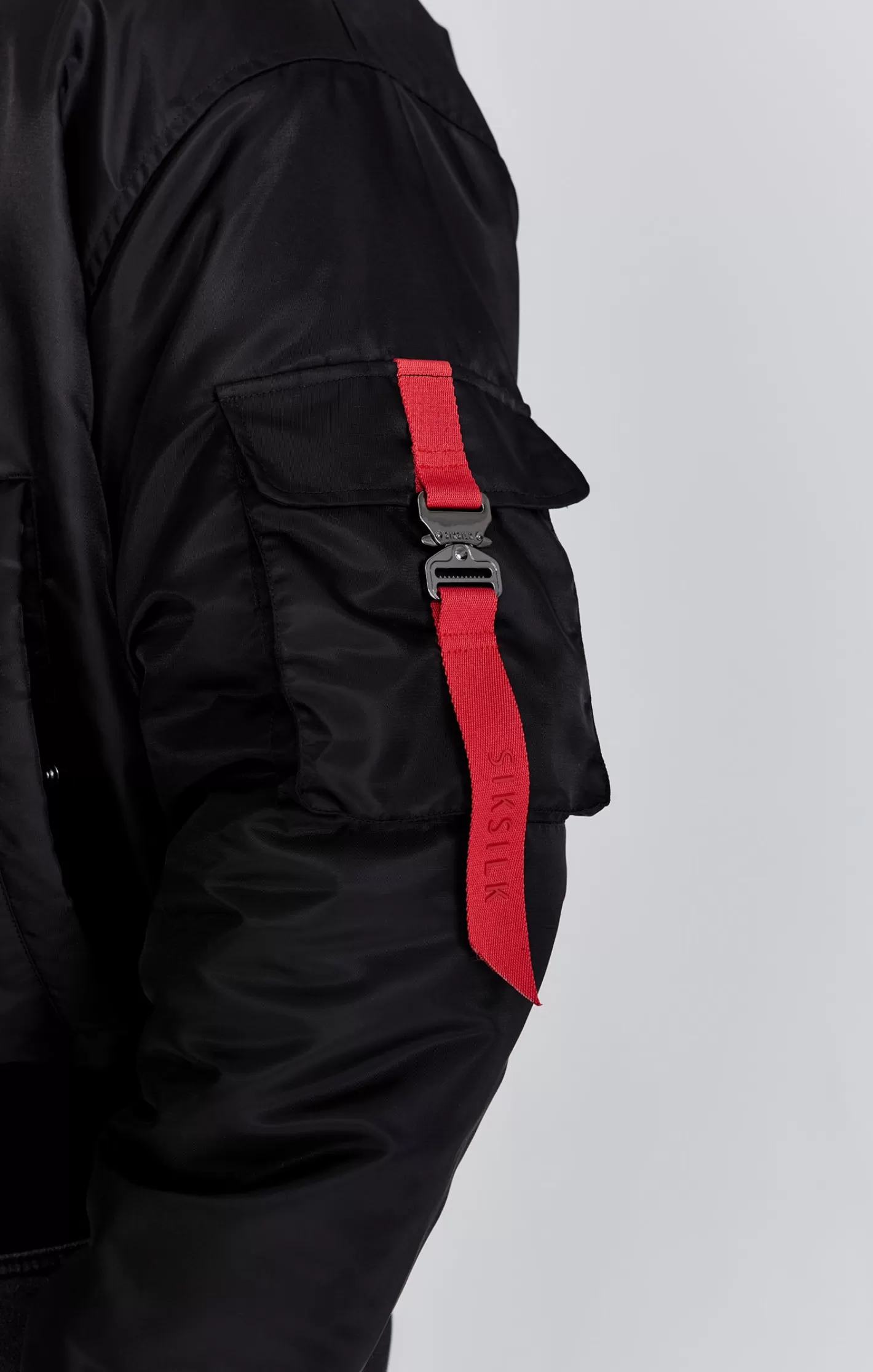 - Utility arm pocket with metal buckle closure