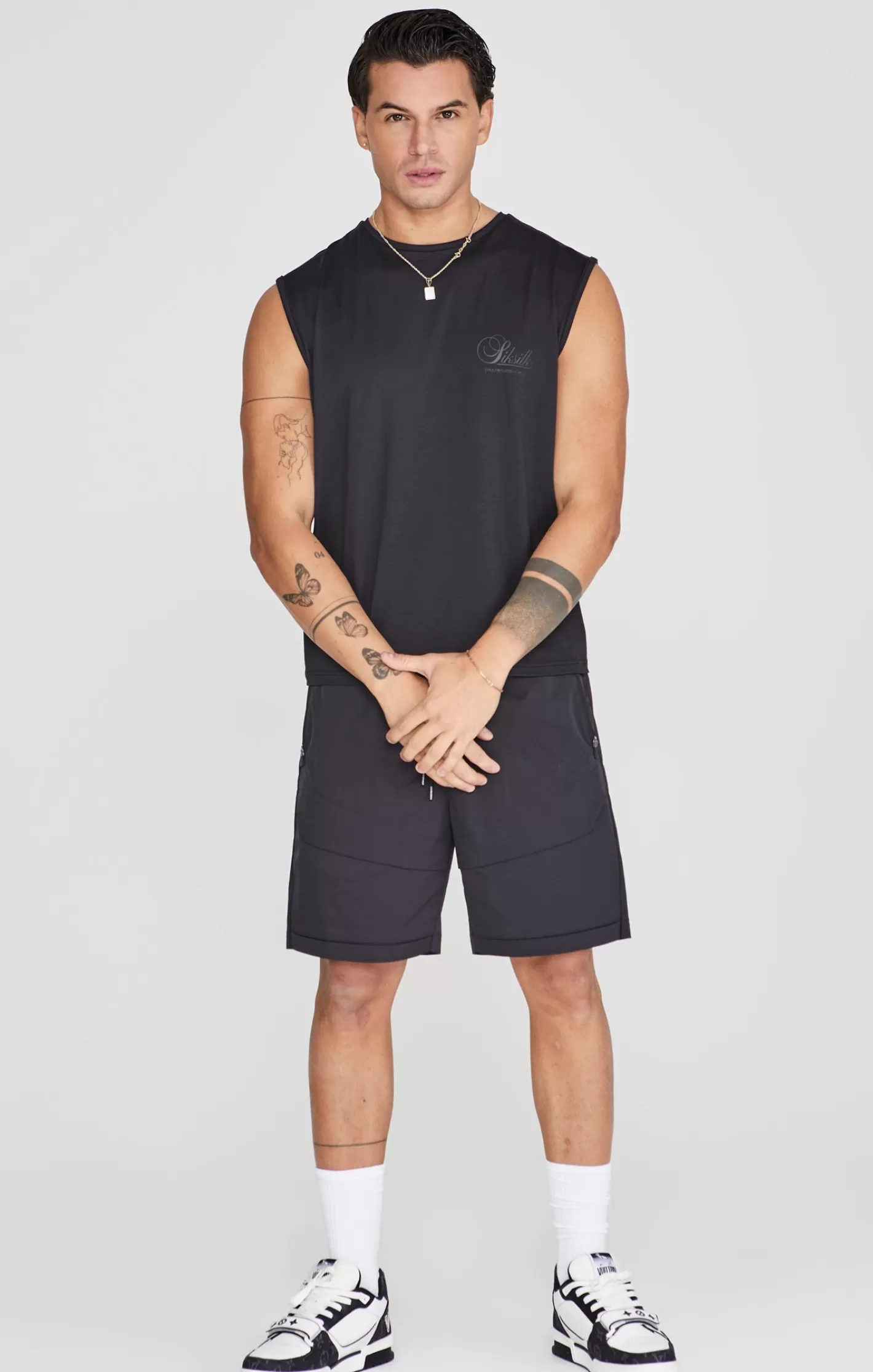 SikSilk-Men's-Black-Relaxed-Logo-Vest